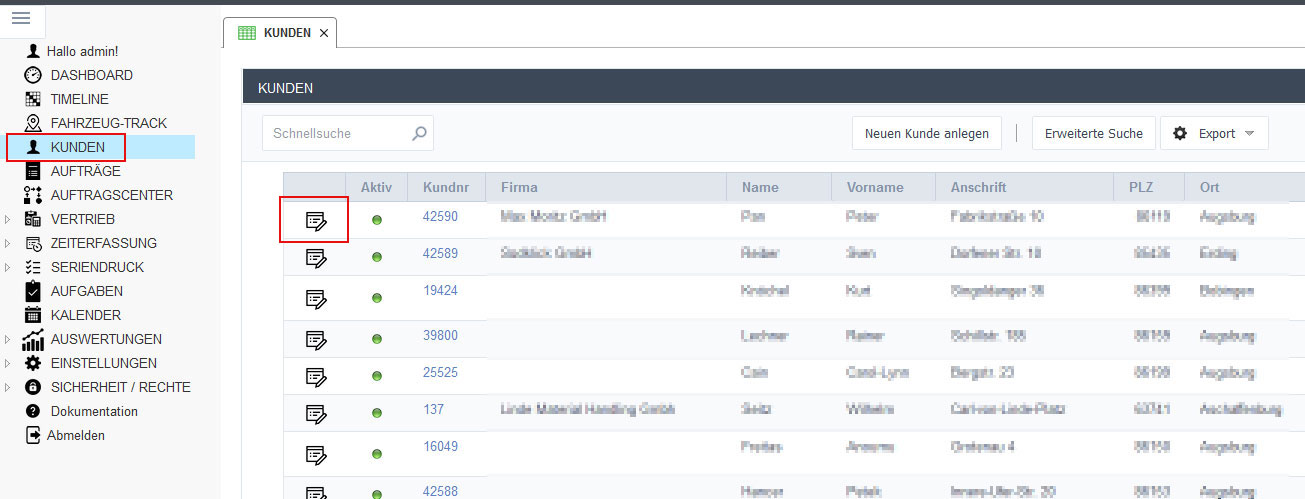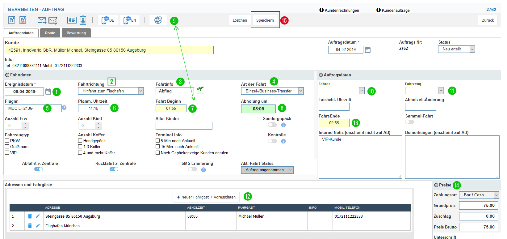 Um einen Fahrauftrag in das System eingeben zu können müssen Sie zuerst den Kunden anlegen. (Link)