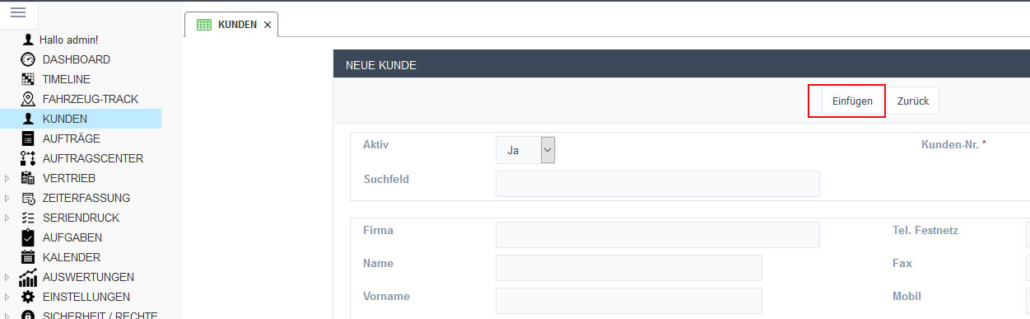 2. Geben Sie die Daten Ihres Kunden ein und klicken auf “Einfügen / Speichern”.